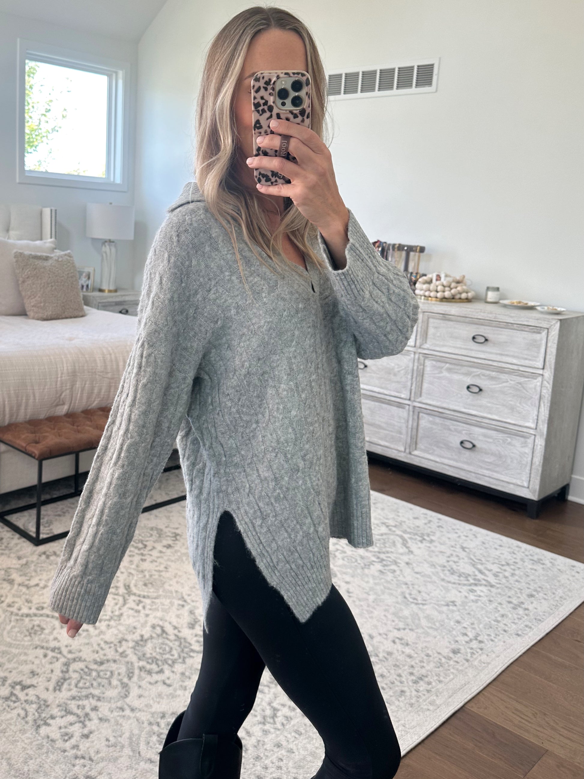 Ultra soft cable knit sweater. Zero itch. Relaxed stretchy fit. True to size. Brooke is 5'10, a size 4, and shown in a small. Made of poly/acrylic/spandex blend fabric.