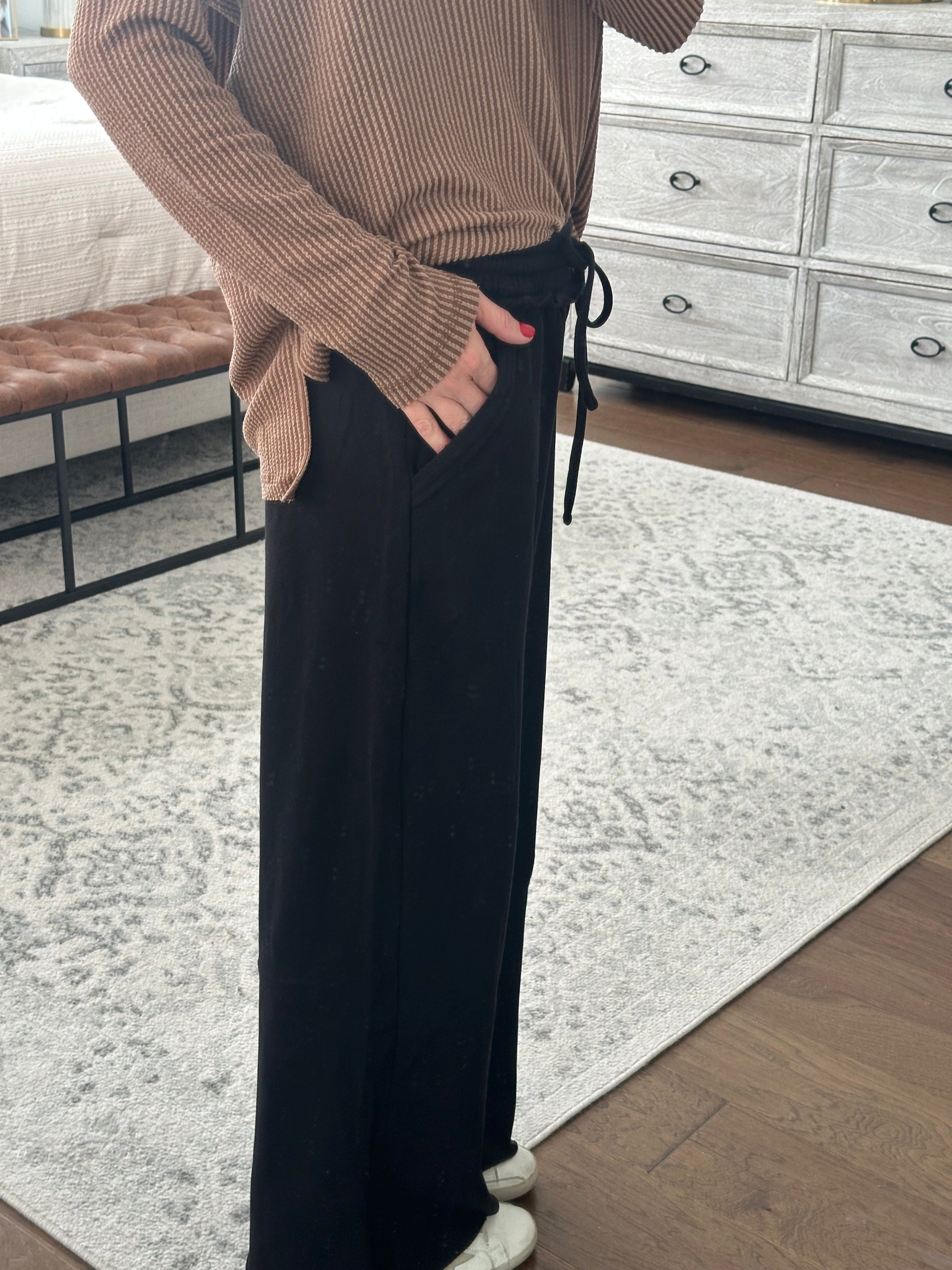Ultra soft sweat pant with soft light weight fleece lining. Stretchy adjustable waist. Pockets. True to size fit. Brooke is 5'10, a size 4, and shown in a small.