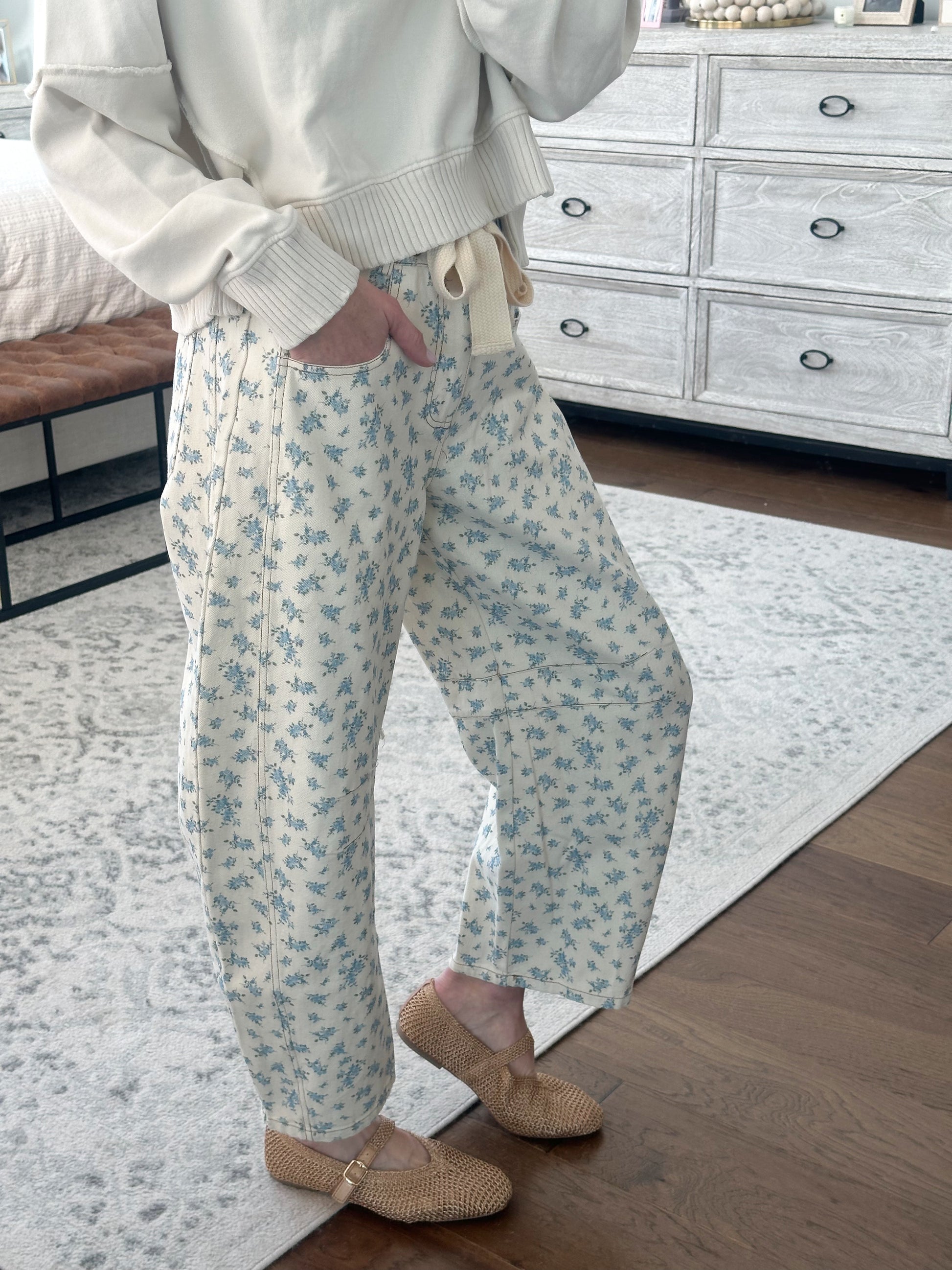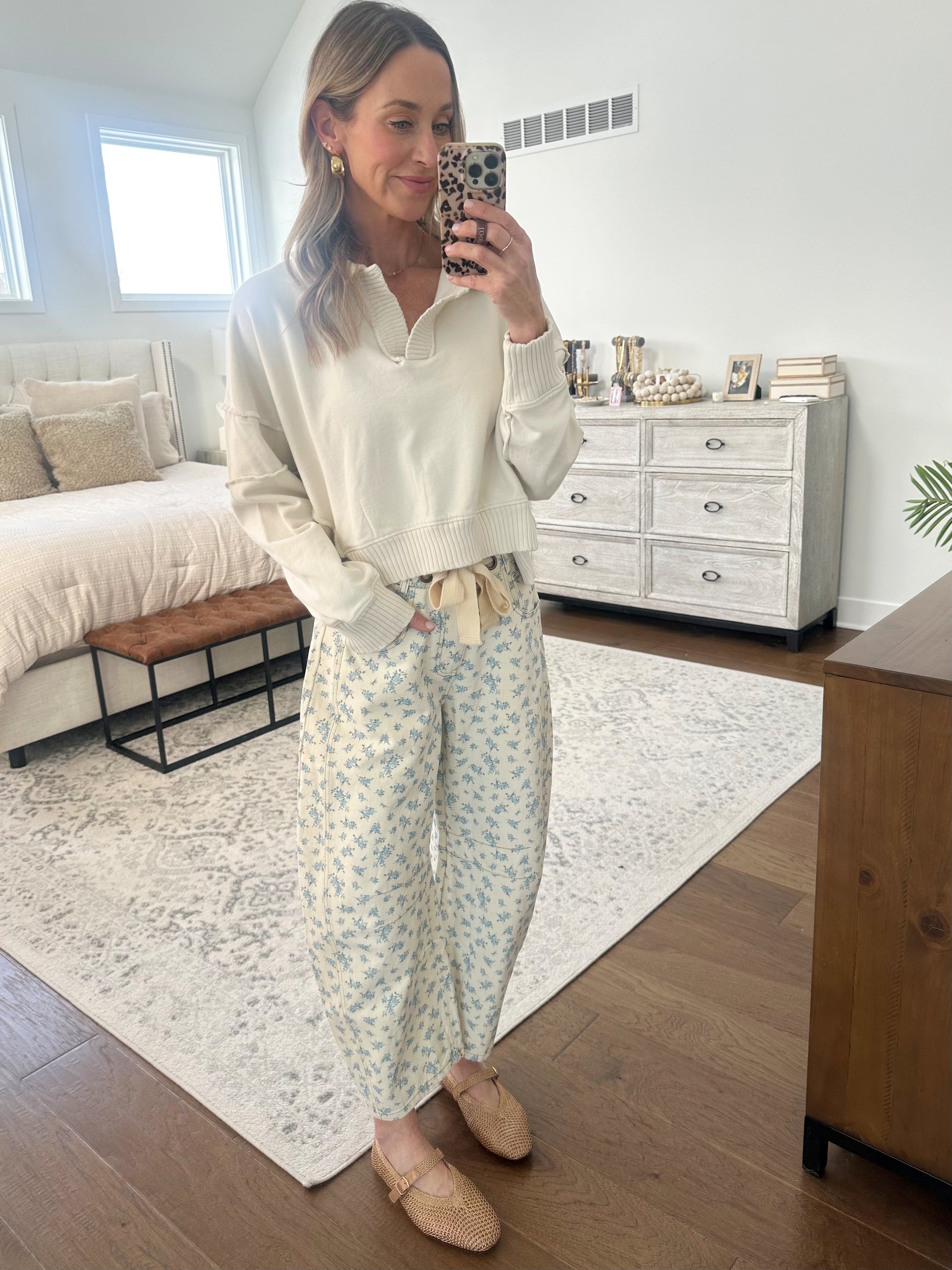 Twill denim with adjustable tie belt. Zip to button closure. Barrel style. Relaxed, true to size fit. Brooke is a size 4, 5'10, and wearing a small. If you are between sizes, go down.