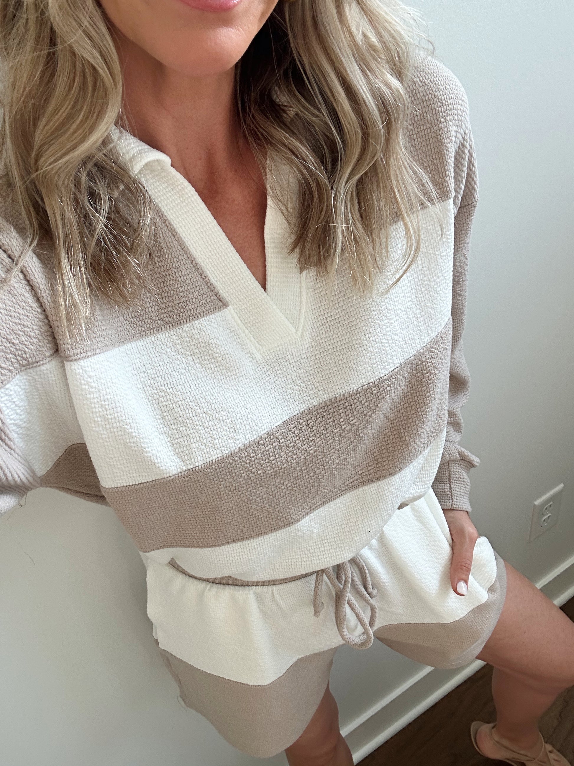 Knit Striped Set- Tan/White
