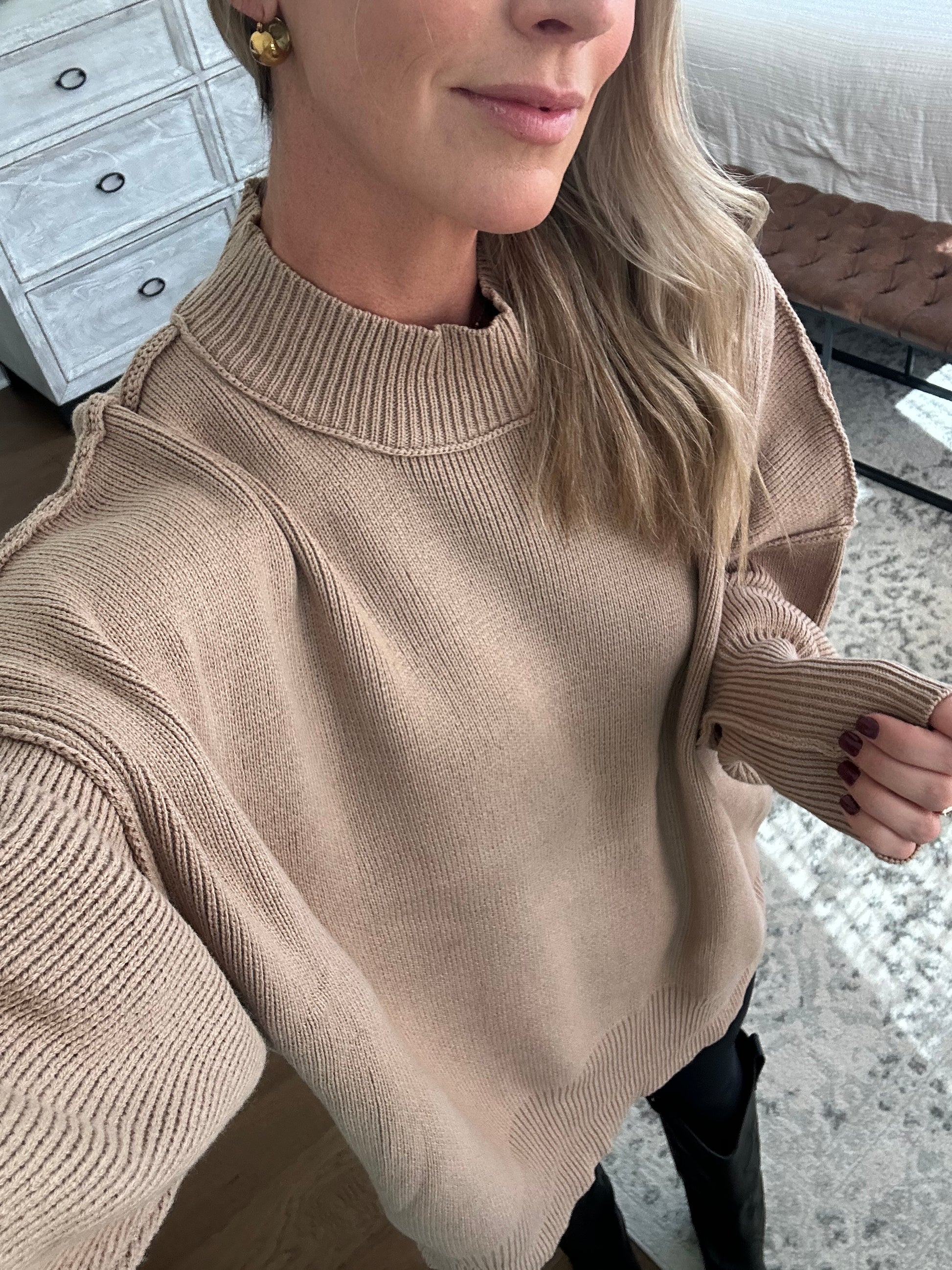 Oversized sweater with crew neck and side sit for the most flattering fit. True to size, zero itch. Brooke is a size 4, 5'10, and shown in the small/medium.