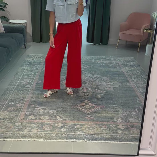 Easy pull on woven pant with stretchy drawstring waist. The fit is true to size. These are made of a poly fabric and have a lightweight breathable feel.