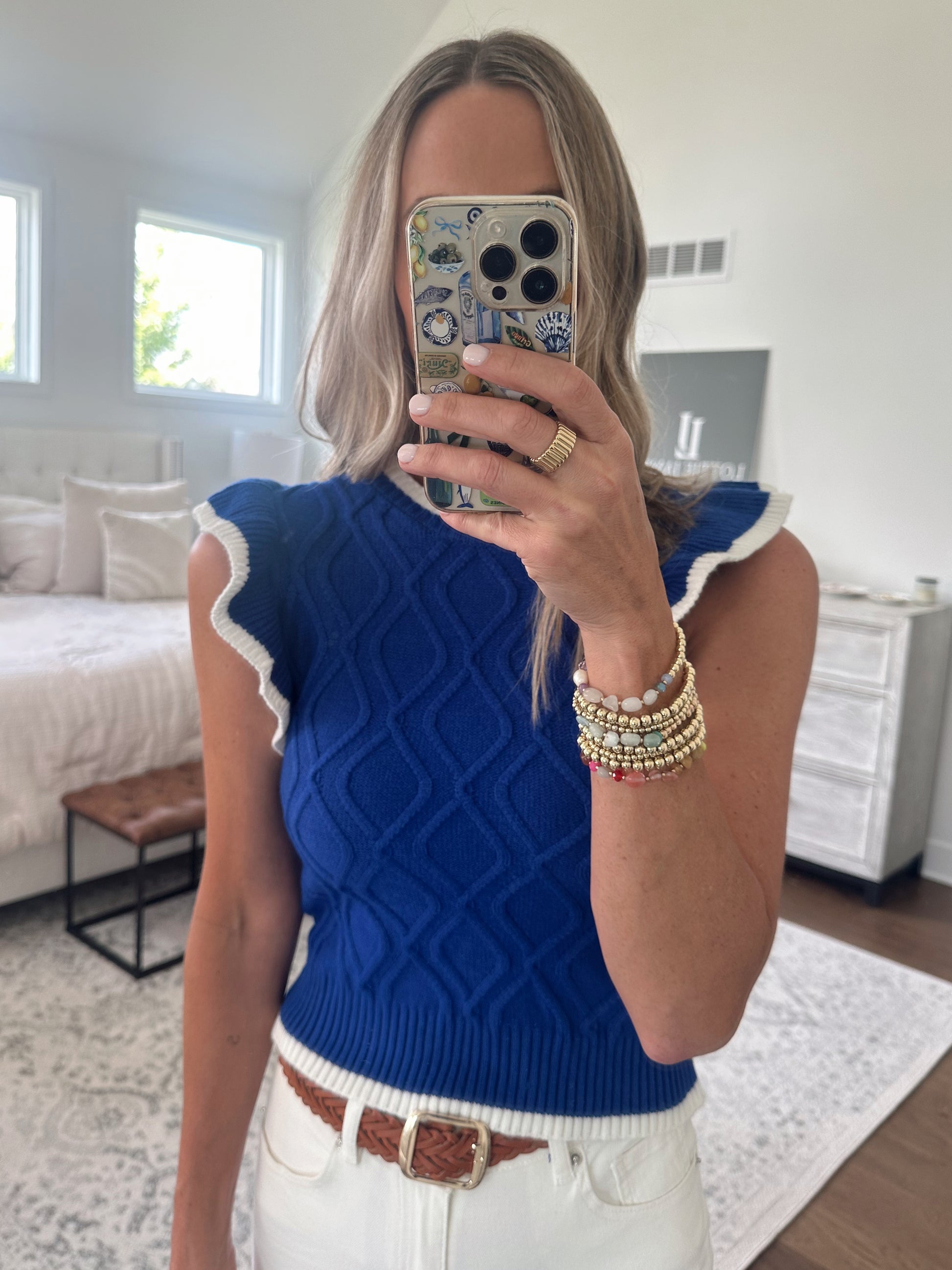 Royal Blue Contrast Ruffle Top